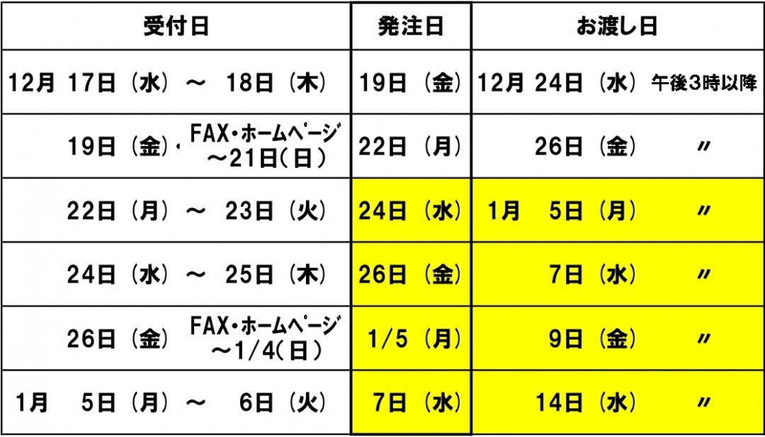 ※申込日によっては間近の配送時にお届けできない場合がありますので、配達希望の方は申込み後に必ず業務課 へ連絡して配送日の確認をしてください。